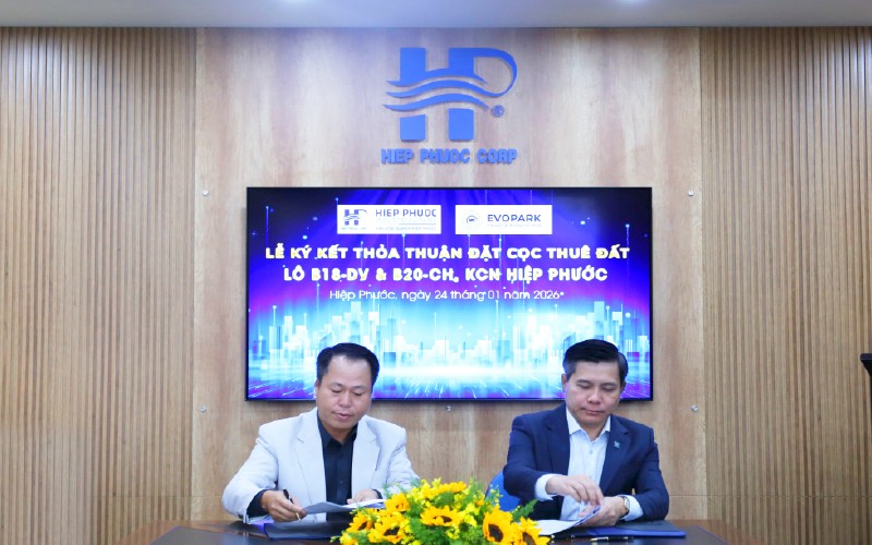 Ngày 24/01/2026, Công ty CP KCN Hiệp Phước (HIPC) đã chính thức ký kết Thỏa thuận đặt cọc thuê đất với Công ty CP EVOPARK tại KCN Hiệp Phước.